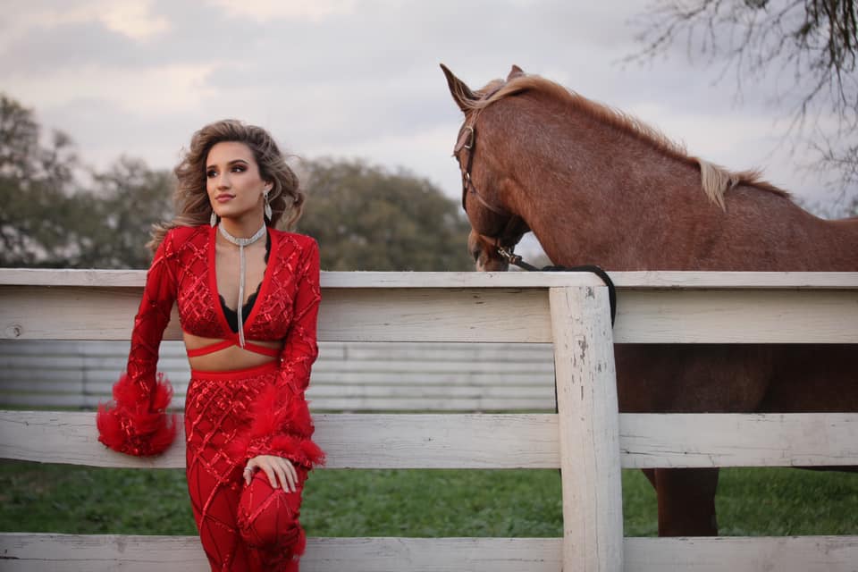 SR: We filmed the video for “Typical Texas Girl” in Round Top, Texas. It was very important to me that we find a farm/ranch in Texas where I can showcase some of the more “typical” Texas girl things. Luckily, we found Nova Ranch! You can see me with hair curled and full makeup, but also shoveling hay, on a four-wheeler, and riding Nova, king of the ranch! I wanted to show the juxtaposition between the two, and the fact that a typical Texas girl can do both! We had such a blast filming it and it is definitely one of my favorite videos that I have ever shot. Huge thank you to the Country Network for premiering that as well!